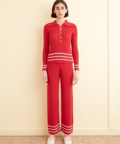 This polo is inspired by a knit set from the 1970s. We reproduced the light, silky knit of the original, with its stripes around the hem, for this style.