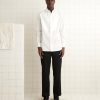 This jacket is inspired by a women’s suit jacket from Italy. We reproduced the silhouette in heavyweight twill, with ribbon appliquéwork across the front buttons.