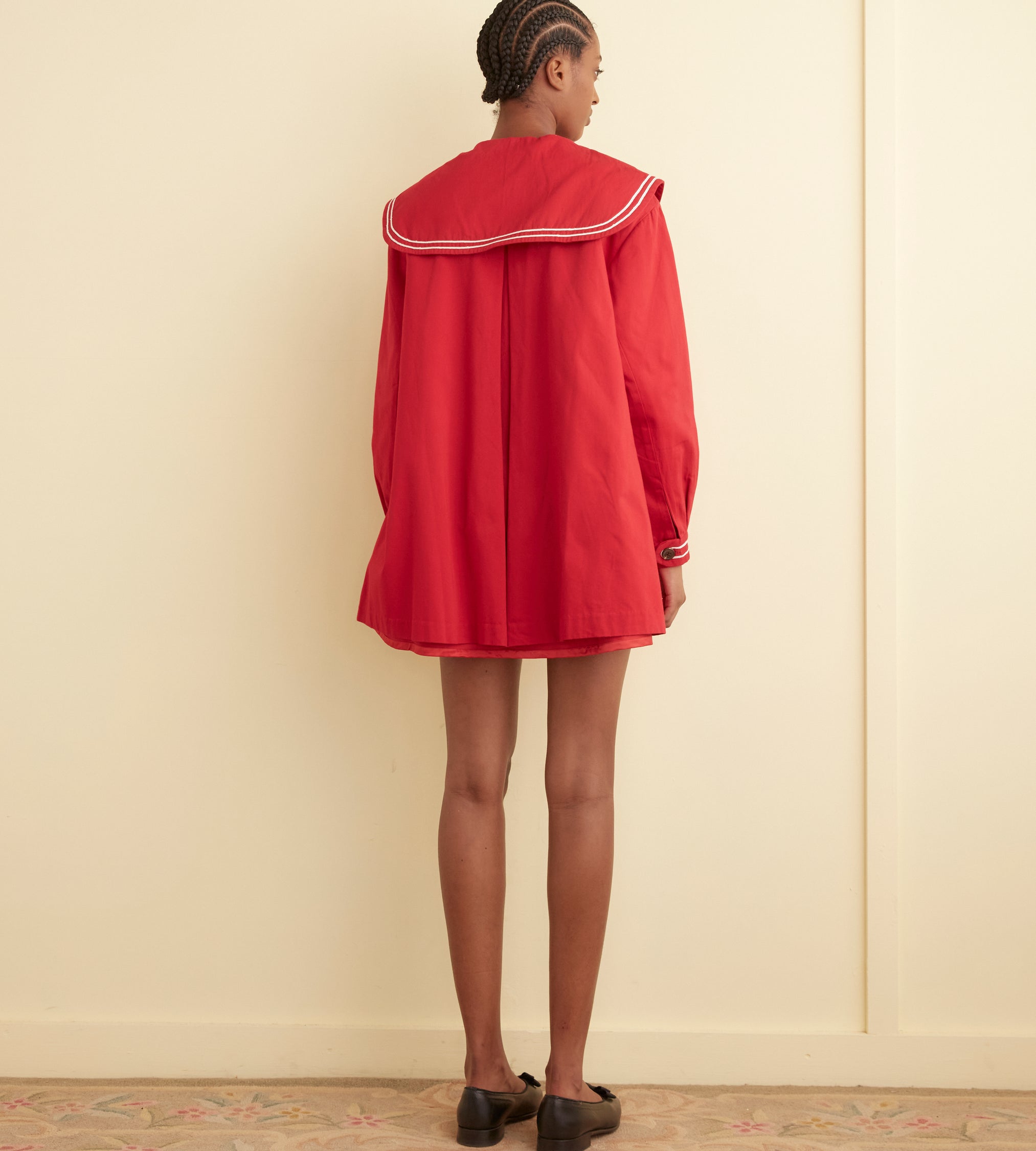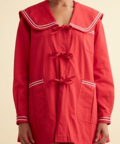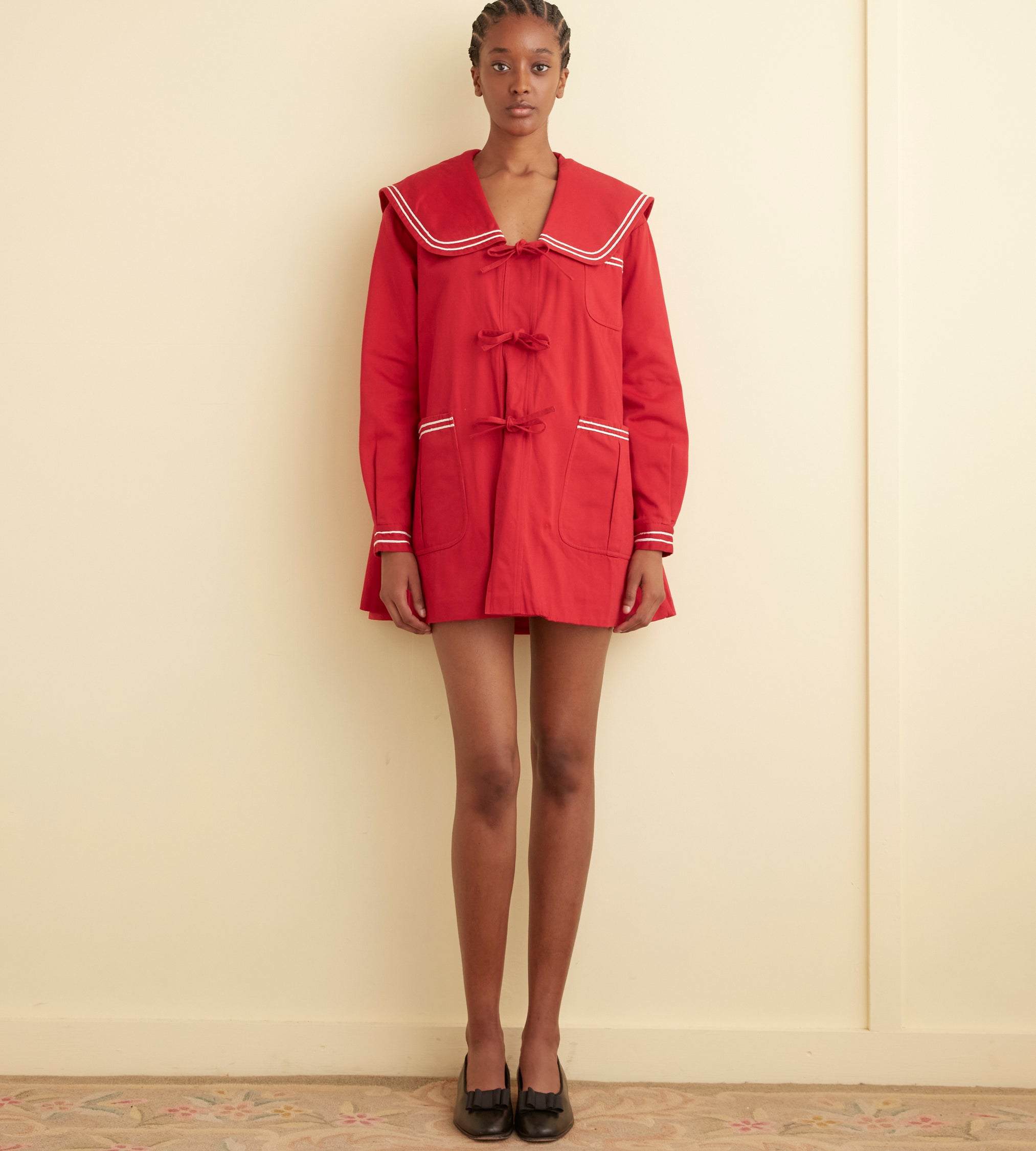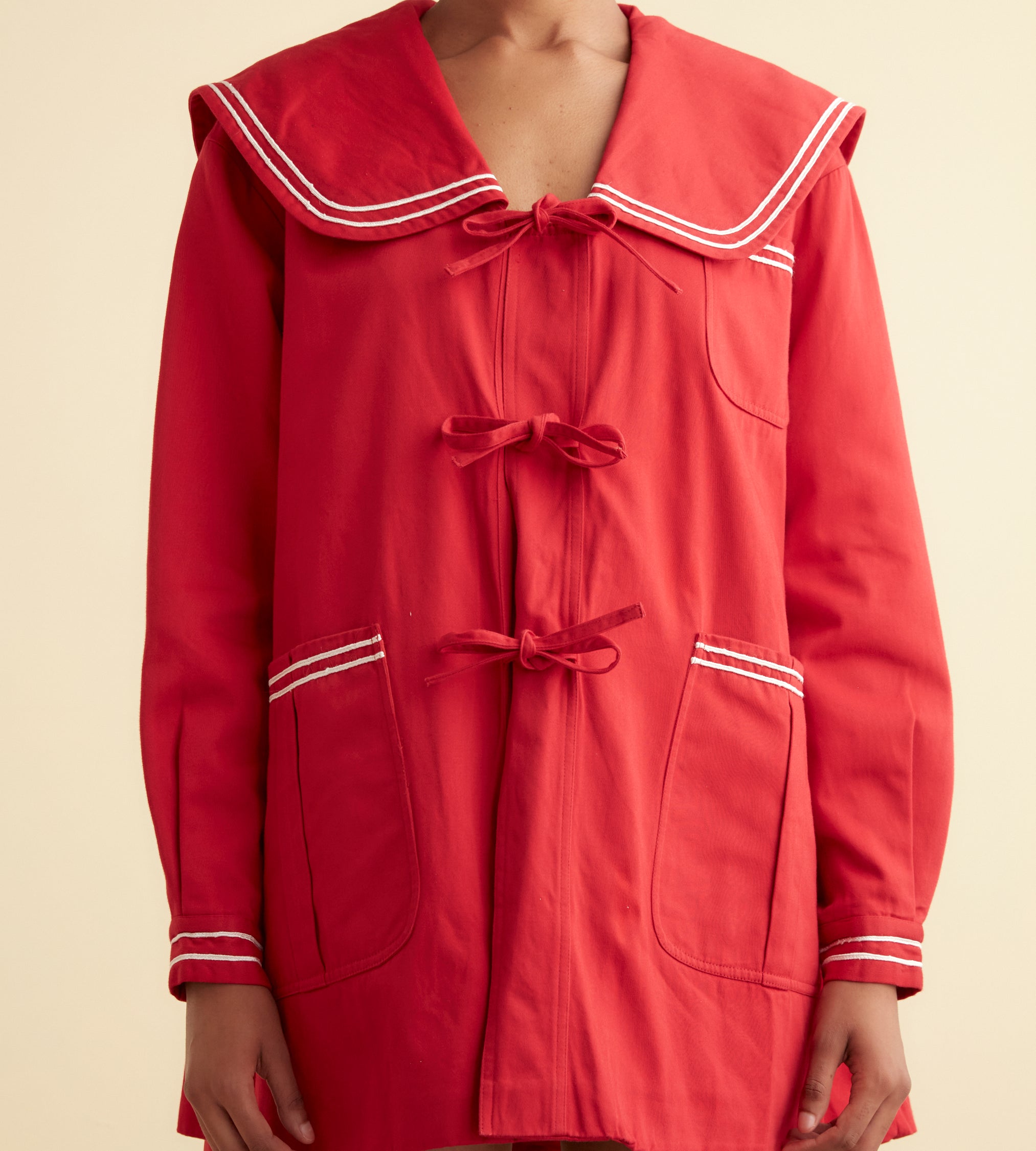 This coat is inspired by a piece from the 1960s. This style is a reproduction of a nautical-themed coat from an in-house label of a well-known American department store.